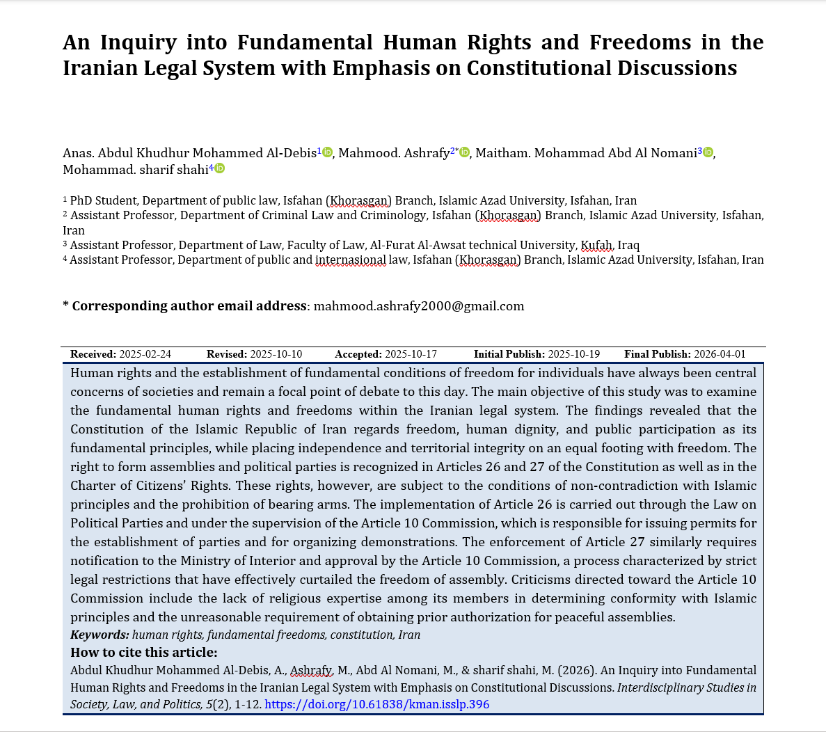 An Inquiry into Fundamental Human Rights and Freedoms in the Iranian Legal System with Emphasis on Constitutional Discussions