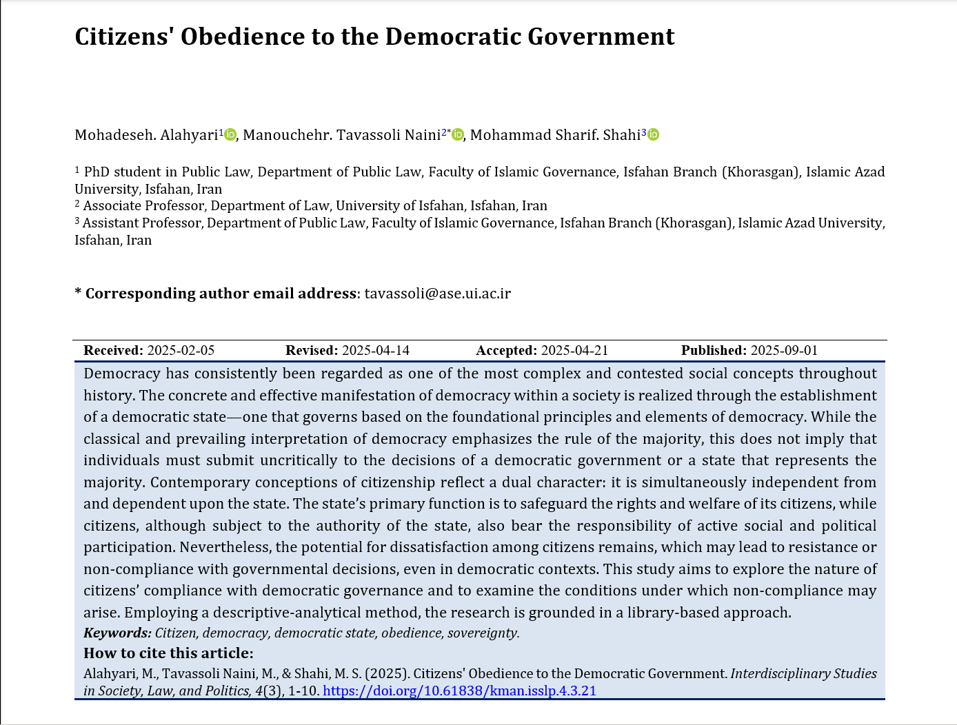 Submitted Articles